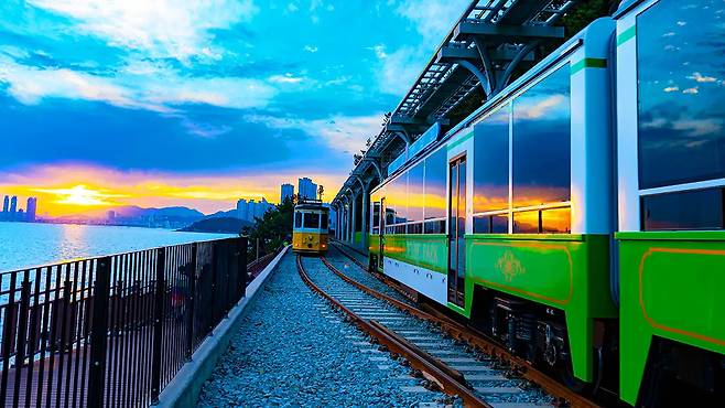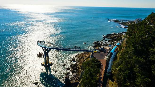해운대 블루라인파크는 미포부터 청사포, 송정을 잇는 4.8km 해안 레일웨이로, 걷기엔 길고 차로는 스쳐 지나가기 아까운 해안을 열차와 스카이캡슐로 천천히 여행할 수 있는 공간이다.