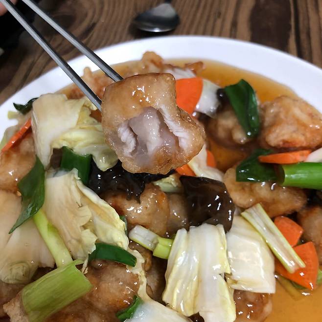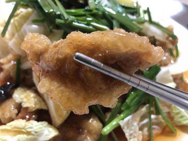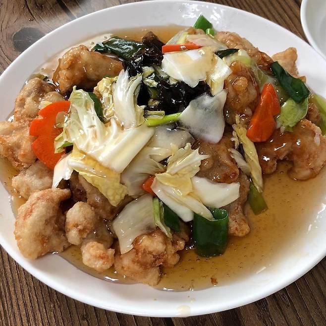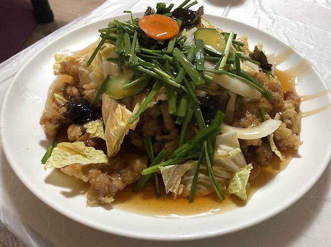 특별한 배추 탕수육을 먹을 수 있는 강원도 평창 '진태원'. 이 집의 탕수육은 찍먹이 불가능하고 부먹만 가능한데 바삭한 튀김 위에 양파, 배추, 부추를 차례로 얹은 후 그 위에 소스를 부어주는 특이한 방식으로 탕수육을 제공하기 때문이다. 바삭한 튀김과 익히지 않은 채소를 올리고 소스를 부어주기 때문에 바삭한 튀김과 아삭한 채소의 식감을 골고루 느낄 수 있다. 달달한 맛의 소스는 감칠맛을 더해 아삭한 배추와 바삭한 튀김을 맛을 한층 더 맛있게 만들어 준다.