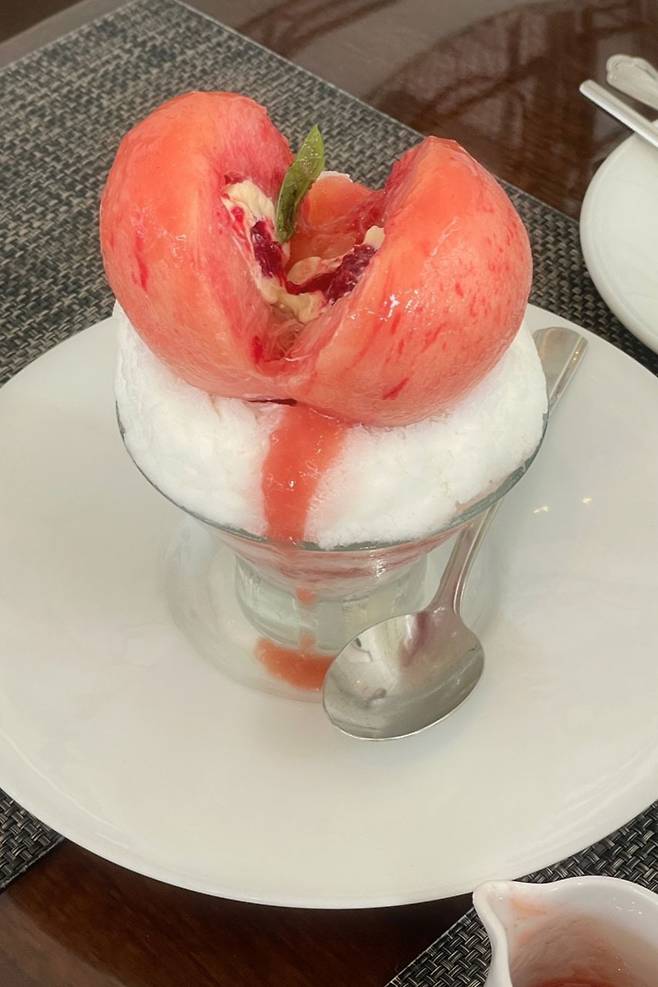 메종 드 라 카테고리는 식사부터 디저트까지 맛있는 미슐랭 프렌치 레스토랑이다. 여름이 되면 빙수를 먹기 위해 인산인해를 이룬다. 빙수는 초당 옥수수 빙수와 복숭아 빙수, 레몬 머랭 빙수가 유명하다. 초당 옥수수 빙수는 국산 초당 옥수수로 만든 아이스크림과 유기농 옥수수로 만든 팝콘이 곁들여 나온다. 초당 옥수수가 위태롭게 붙어있다. 앞접시에 덜어 놓고 먹으면 편하다. 어쩐지 예상되는 맛이다. 근데 그걸 훨씬 뛰어넘을 정도로 식감이 좋고 달다. 복숭아 빙수는 우유 얼음 위에 큼지막한 복숭아가 얹어 나온다. 반으로 가르면 안에 바닐라 크림과 라즈베리 소스가 가득 채워져 있다. 복숭아는 따로 꺼내 잘게 자른 뒤 빙수와 곁들여 먹어야 번거로움이 덜하고 본연의 맛을 즐길 수 있다.