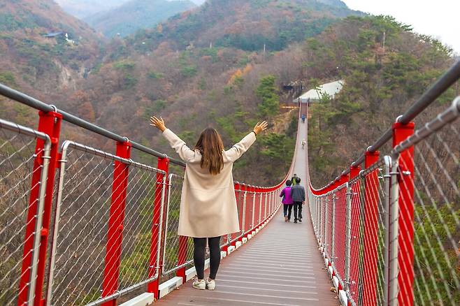 파주의 감악산은 해발 675m로 서울 근교 등산하기 좋은 곳으로 제격인데요. 감악산의 하이라이트는 바로 국내에서 다섯 번째로 길다고 알려진 감악산 출렁다리라고 할 수 있죠. 길이 150m의 다리는 계곡 위에 아찔하게 놓여 있어 건널 때마다 짜릿한 스릴을 선사합니다.