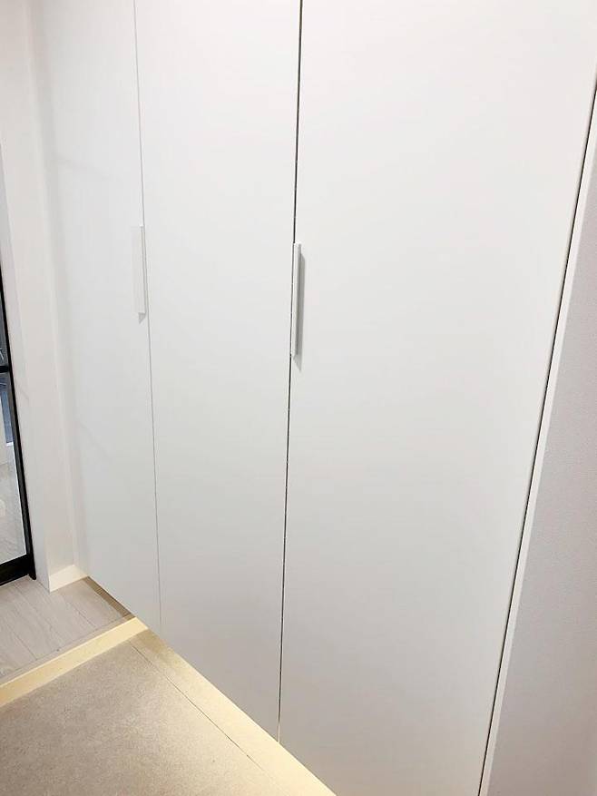 신발장 한 부장을 띄우고 조명을 설치해서 트렌디한 분위기를 살려냈어요!