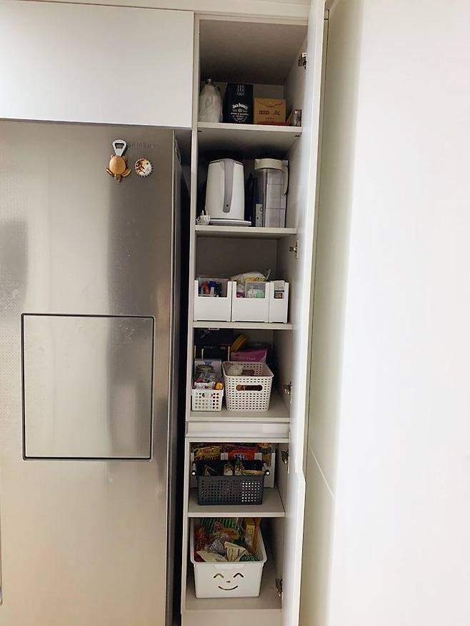 냉장고 장안에는 수납함으로 찾기 쉽게 정리했어요.