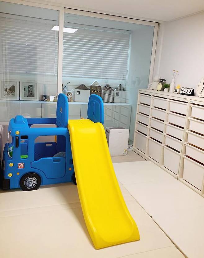 아이 방은 수납의 끝을 보여주는 곳이에요. 놀이방으로 활용하고 있는 곳으로 아이 손에 닿는 칸에는 장난감과 책을 넣어주고 손이 안 닿는 곳은 각종 잡동사니들을 넣어두었어요.