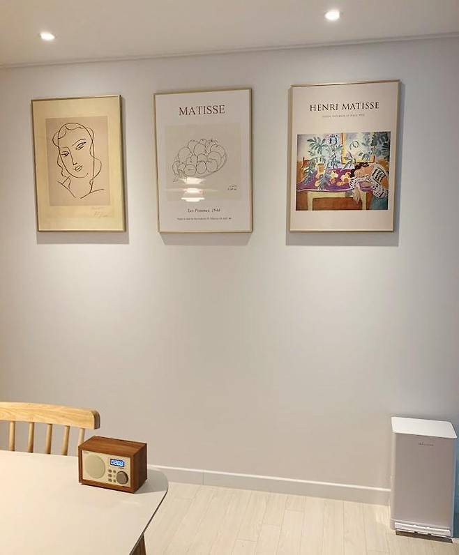반대편 벽면에는 액자와 조명으로 포인트 주었습니다.항상 깔끔하게 유지하려고 노력 중이에요!
