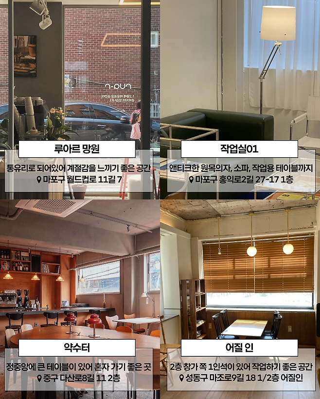 망원동부터 왕십리까지. 맛있는 커피와 힙한 분위기는 덤인 카페를 소개합니다.
