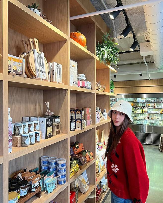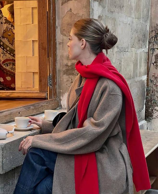 레드 가디건으로 연말 분위기를 더했네요 :)