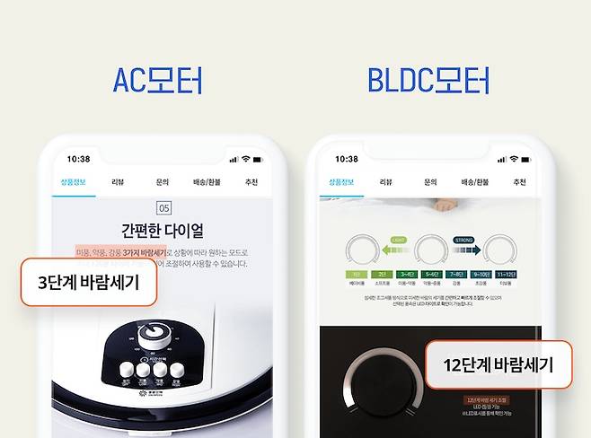 반면 BLDC는 4단부터 최대 24단까지 바람세기가 아주 세밀하고 다양하기 때문에 한눈에 딱 구분이 된답니다.