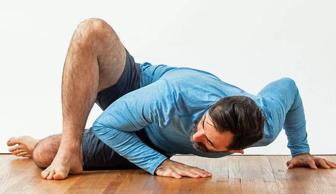 네 발로 기는 자세에서 한쪽 무릎을 앞으로 가져와 90도로 꺾고, 반대쪽 다리는 뒤로 쭉 뻗습니다. 상체를 앞으로 숙이며 둔근과 고관절에 당김을 느낍니다. 한쪽 다리당 20~30초 유지한 후 반대쪽으로 바꿉니다.
