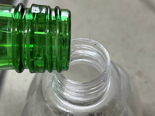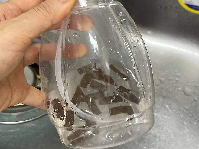 모기향을 잘게 부러뜨려 넣은 다음 여기에 소주를 소량 넣습니다. 알코올은 휘발성이 높아 냄새가 빠르게 퍼지면서 모기를 차단하는 역할을 합니다.