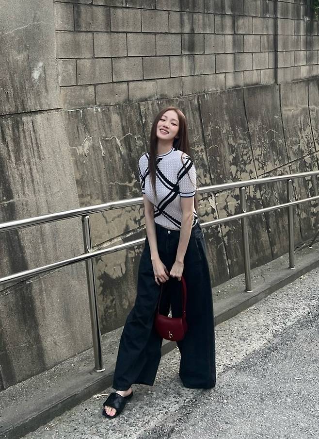 공개한 사진에서 이성경은 복근이 살짝 드러난 크롭톱 티셔츠에 와이드 핏 데님 팬츠를 착용한 산책룩으로 요염하면서도 러블리한 포즈를 취해 시선을 사로잡았다.