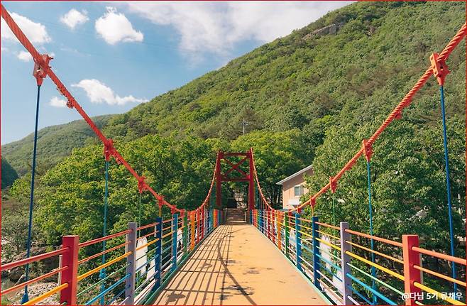 사람이 올라서면 살짝 출렁이는 흔들다리로, 아래 흐르는 계곡 풍경과 함께 스릴 있는 구간. 사진 찍기 좋은 포인트로도 인기입니다.