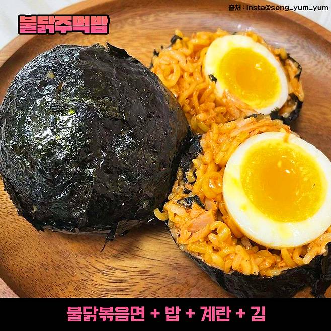 불닭볶음면만 먹기 심심할 때 먹는 포만감 대박 레시피에요. 안에 넣는 계란은 반숙과 완숙 전부 없지만, 밥과 면이 있어서 노른자가 촉촉한~ 반숙이 조금 더 잘 어울리더라구요. 히히.