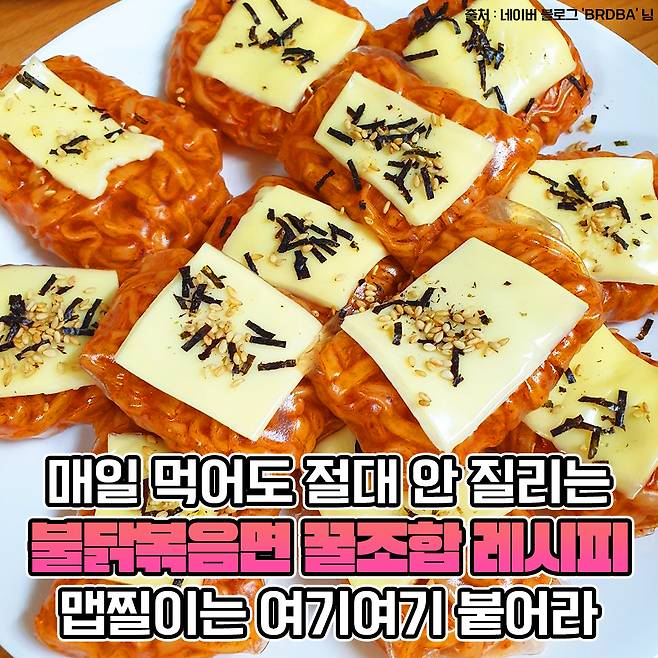 지금까지 불닭볶음면으로 만들 수 있는 꿀조합 레시피 소개했는데요. 다 넘 맛있어 보여요. 넘나 먹.고.싶.다. 소개된 레시피 외에 여러분들만의 꿀레시피가 있다면 공유해주세요~!