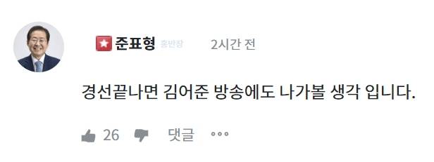 국민의힘 대선 1차 컷오프 4인에 든 홍준표 후보가 결국 하나의 정당이나 하나의 진영이 아닌 국민 전체로부터 표를 받아야 하는 대선 본선을 의식한듯, 이같은 '확장'을 강조한 지지자 제안에 더불어민주당과 조국혁신당 등 진보 진영의 눈길이 집중되는 플랫폼인 '김어준의 겸손은 힘들다 뉴스공장' 유튜브 방송에 출연할 방침을 밝혔다.