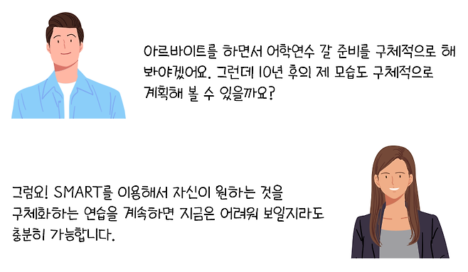 그럼 이제 구체적으로 어떻게 목표를 세우고, 그 목표를 성취하기 위해 어떤 노력을 해야 할지 살펴볼까요?