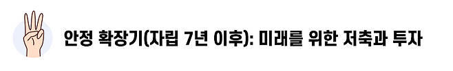 자립 후 7년 이후가 되면 월급도 안정적으로 나오고, 이제는 "돈을 어떻게 불릴까?"를 본격적으로 고민할 시기가 되겠죠. 여기서 중요한 건, 소득이 늘었다고 지출을 늘리면 안 된다는 거예요.