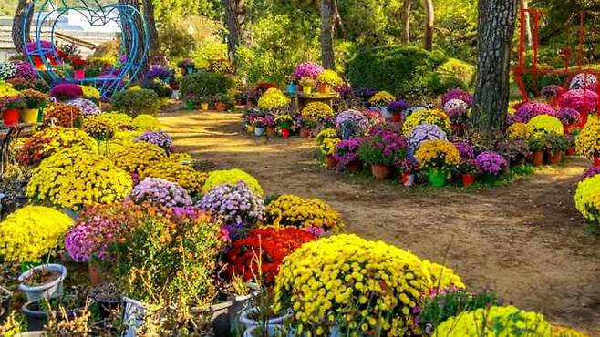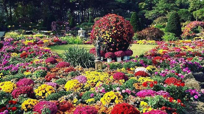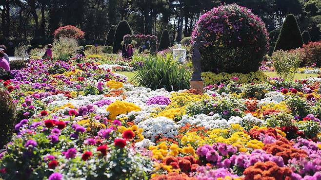 정원 전체가 하나의 꽃 갤러리로 변신해, 국화가 주는 다채로운 매력을 마음껏 즐길 수 있습니다.