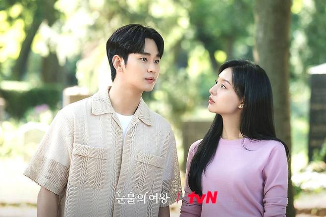 드라마 '눈물의 여왕'에 힘입어 나날이 '수직 상승' 중인 인기를 보이고 있는 김지원과 김수현.