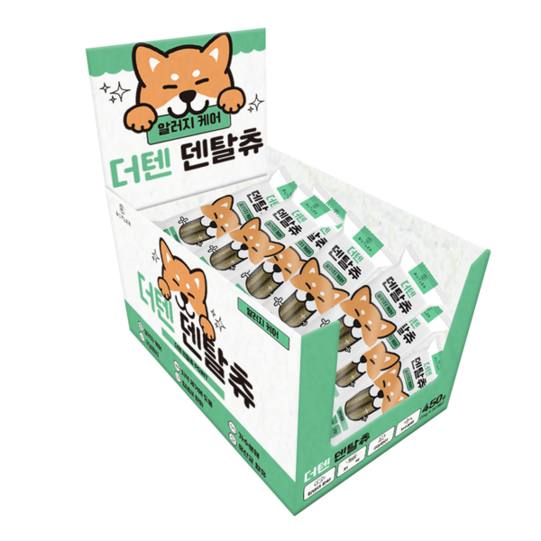 독특한 칫솔모양에 최적의 사이즈로 제작된 덴탈껌입니다. 가수분해 단백질을 원료로 사용하여 알레르기 개선과 함께 치아 건강도 챙길 수 있어요. 이 외에도 면역력 증가, 소화기능 증진 및 장기 기능에 좋은 오메가 성분과 혈액의 흐름에 도움을 주는 연어유, 피모 개선에 좋은 콜라겐도 같이 함유되어 있습니다.