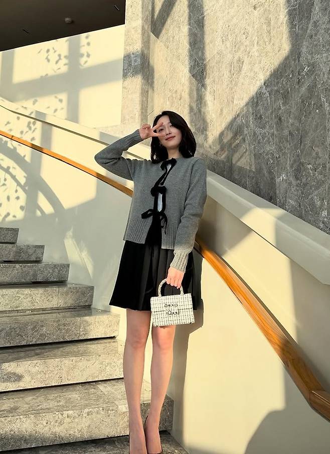 공개한 사진에서 표예진은 블랙 플리츠 스커트에 화이트 이너를 입고 그레이 니트 카디건을 걸친 프레피룩으로 청순하면서도 발랄한 미모를 드러냈다.
