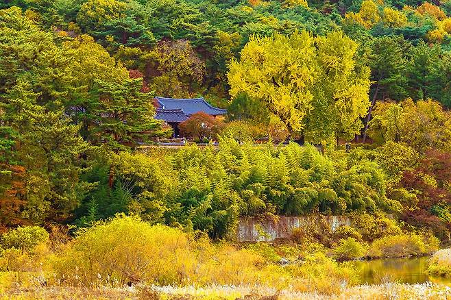 전국에서 손꼽히는 은행나무가 밀양에 있다. 금시당·백곡재는 경상남도 밀양시 활성동에 있는 조선 시대의 별서로 금시당과 백곡재 두 채로 된 건물이다. 금시당은 조선시대 문신인 금시당 이광진 선생이 말년에 고향으로 돌아와 제자들을 교육하기 위해 지은 건물로 ‘산수와 전원에서 여생을 즐긴다’는 의미라고 한다. 금시당은 명종 21년(1566년)에 처음 지어졌다. 하지만 임진왜란(1592년) 때 불타 없어졌고 현재 남아 있는 것은 1743년에 백곡 이지운 선생이 복원했다. 백곡재는 백곡 이지운을 추모하기 위해 철종 11년(1890년)에 세운 건물이다. 금시당의 정원에는 이광진 선생님이 직접 심었다는 450년 된 은행나무가 있다. 밀양시 보호수로 지정될 만큼 가을이면 노랗게 물들어 아름다운 풍경을 자아낸다. 하늘을 뒤덮은 노란색, 널찍한 마당까지 온통 노란색. 늦가을의 낭만을 만끽하기에 더할 나위 없는 장소다.