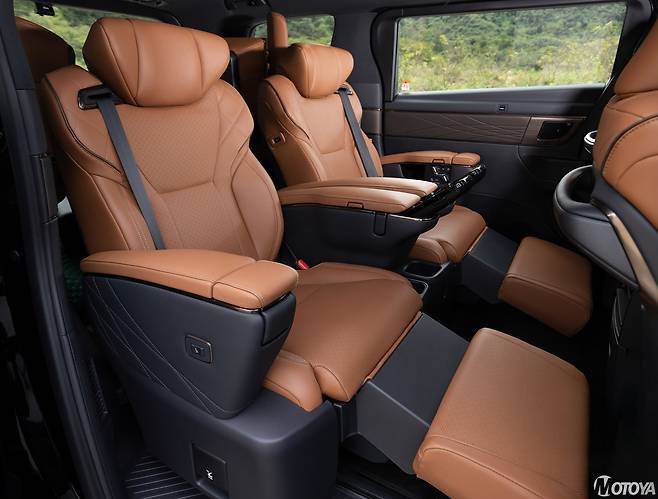 국내도입분인 이그제큐티브 라운지의 경우에는 3열 좌석은 공간 면에서 다소의 손해를 본다. 그렇지만 시트 자체의 구성은 성인에게 충분한 수준의 착좌감과 거주성을 제공한다. 3열좌석은 리클라이닝은 물론 전후 슬라이딩도 가능해서 탑승자에게 맞는 최적의 자세와 공간을 확보할 수 있다.