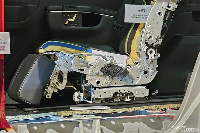 이 뿐만 아니라 이 시트는 다른 좌석에는 없는 전용의 진동 저감 마운트까지 설치되어 있어, 다른 좌석과 확실하게 구분되는 승차감을 선사한다. 시트는 전동식으로 전후 슬라이딩이 되는데, 통상적인 전동식 슬라이드와는 달리, 단계가 정해져 있다는 느낌을 준다. 조금만 앞으로 옮긴다는 생각으로 살짝만 눌러도, 정해진 위치에 멈춰서 "찰칵"하는 접합음이 들리는데, 이는 충돌시 탑승객의 안전을 확보하기 위한 조치라고 한다. 심지어 슬라이딩 기능은 수동으로도 사용할 수 있늫ㄴ데, 이는 3열좌석에 탑승한 승객을 배려한 것이다.