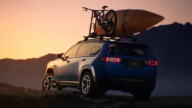 새롭게 공개된 후면부 이미지에서는 트렁크 도어 상단의 간결한 스포일러와 펜더까지 이어지는 일체형 테일램프가 확인된다. 육각형 번호판 마운팅은 지프의 디자인 언어와 일관성을 유지한다. 후면에 부착된 '4x4' 배지는 사륜구동 시스템이 탑재될 것을 암시한다.