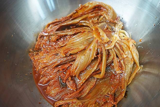 김칫소는 살짝 털어내어 깔끔하게 준비합니다.