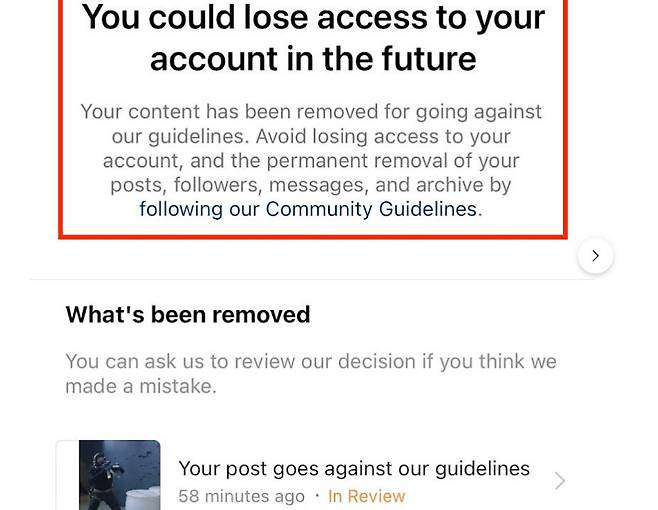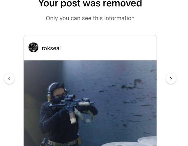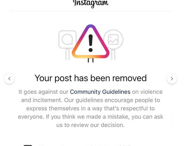 공개된 사진에는 인스타그램 삭제처리 되기 전, 여러 차례 경고 받았던 게시물 캡처본이 담겼다.