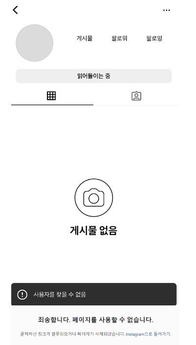 이근의 계정에 들어가면 '사용자를 찾을 수 없음', '클릭하신 링크가 잘못되었거나 페이지가 삭제되었습니다'라는 메시지가 뜬다.