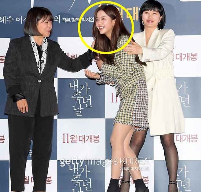 -시사회 이후 진행된 포토타임에서 영화의 주연인 세사람이 함께하는 시간에 김혜수와 이정은이 노정의를 가운데 센터에 세우려는 훈훈한 모습을 보여줬다. 그만큼 차세대 스타로서의 가능성을 보여준 배우라는 것을 두 선배가 인정해 준 것이다.