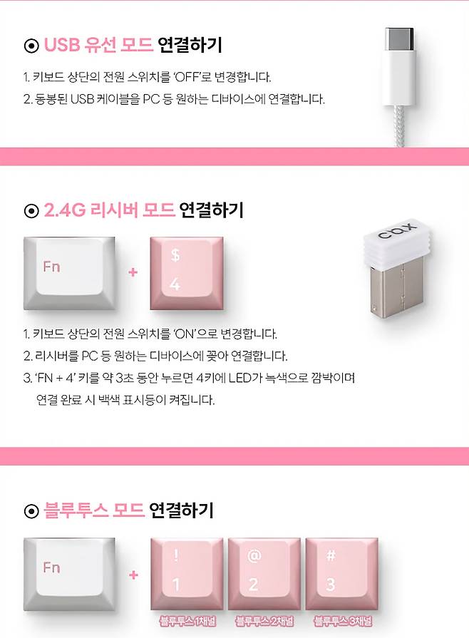 연결 방식은 3가지입니다. 유선/동글/블루투스입니다.