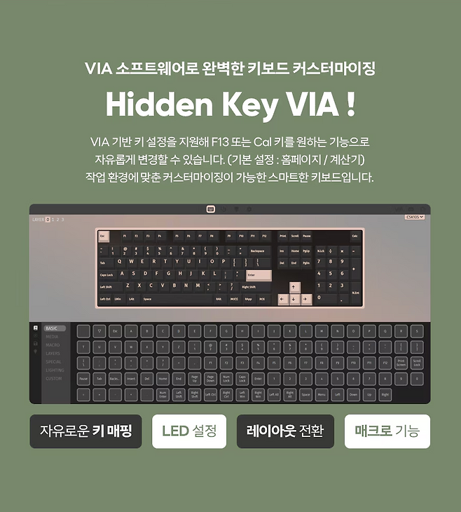키 맵핑과 레이아웃 LED 설정 매크로까지도 모두 지원을 합니다.