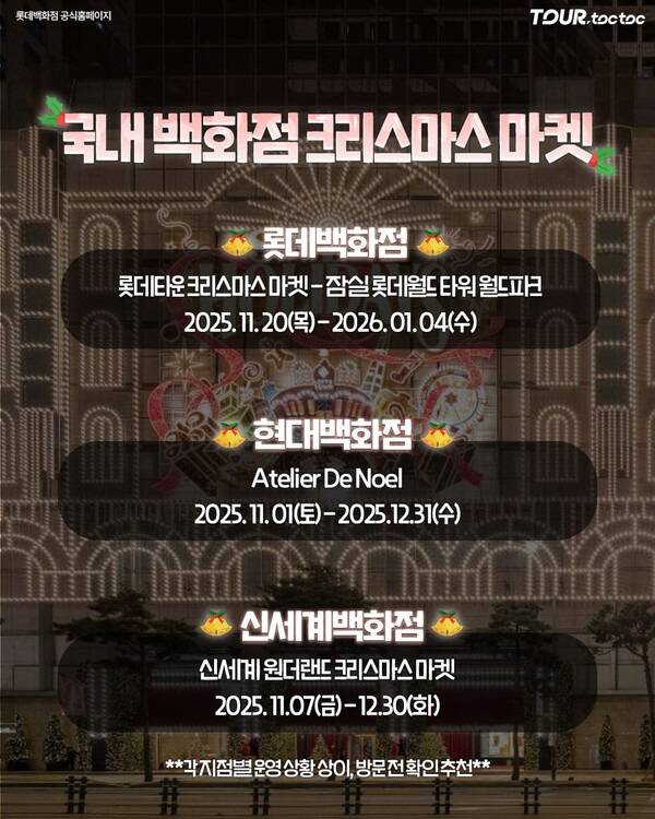 신세계백화점에서 열리는 크리스마스 마켓은 고급스러운 장식과 브랜드 협업 상품이 매력적입니다. 지점별 운영 일정과 구성에 차이가 있어 방문 전 확인이 필요합니다.