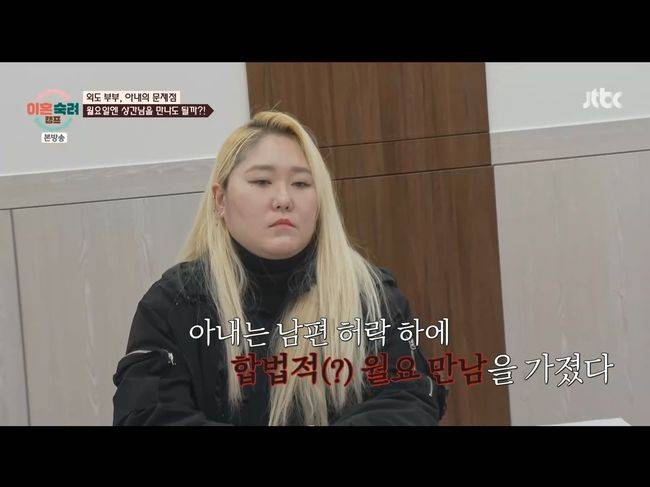 아내는 상간남을 잊지 못한 것에 남편은 분노했지만, 아내는 오히려 월요일만 그 남자를 만나게 해달라고 했다. 아내는 25층 난간에 매달리기까지 하며 울었고, 결국 남편은 그렇게 아내의 월요일 만남을 허락했다.