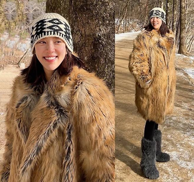 공개한 사진에서 손담비는 강추위도 무섭지 않는 포근한 털코트와 털 부츠, 여기에 니트 비니를 매치한 우아한 사모님룩으로 산책룩을 선보였다.