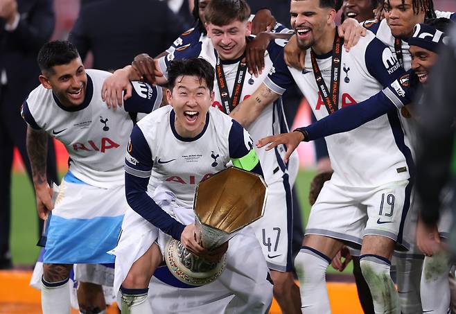 2024-25시즌에는 그토록 원하던 우승 트로피를 들어 올렸다. 지난 시즌 토트넘은 엔지 포스테코글루(59·호주) 감독 체제에서 리그 17위까지 추락했지만, 유럽축구연맹(UEFA) 유로파리그(UEL) 우승을 거머쥐었다. 주장인 손흥민이 트로피를 높이 들어 올리며 동료들과 영광을 나눴다. 이 우승은 2007-08시즌 잉글리시풋볼리그(EFL)컵 이후 토트넘이 17년 만에 차지한 우승이었다.