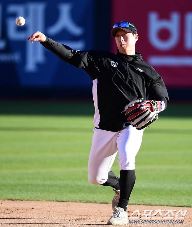 10일 수원 케이티위즈파크에서 열린 한국시리즈 3차전 KT와 LG의 경기. 경기 전 수비 훈련을 하고 있는 이호연. 수원=송정헌 기자 songs@sportschosun.com/2023.11.10/