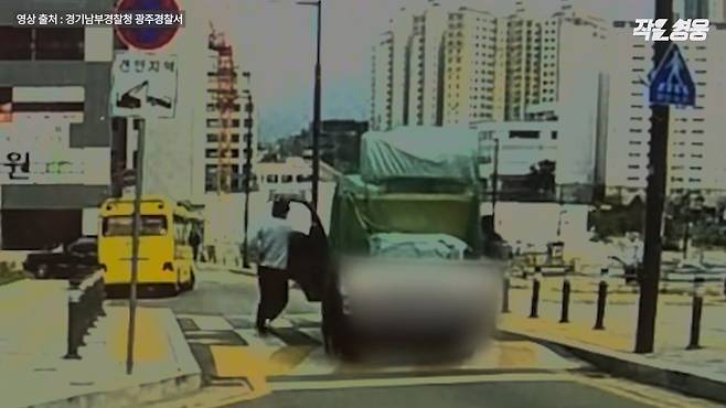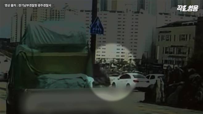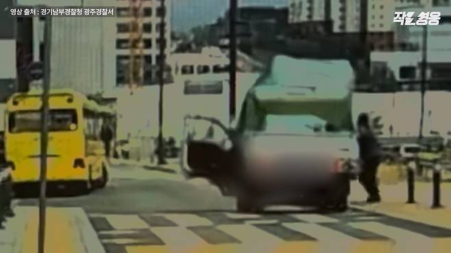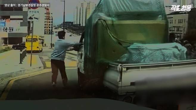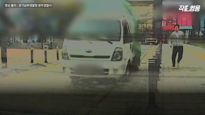 지난 4월 10일 오후 경기도 광주시 태전동에서 작은 가게를 운영하는 이희성씨는 커피를 사러 나왔다가 트럭 한 대를 발견합니다. 그런데 뭔가 이상했어요. 트럭이 언덕을 따라 아래로 미끄러지는데, 그 움직이는 트럭에 누군가 매달려 끌려가고 있었습니다.