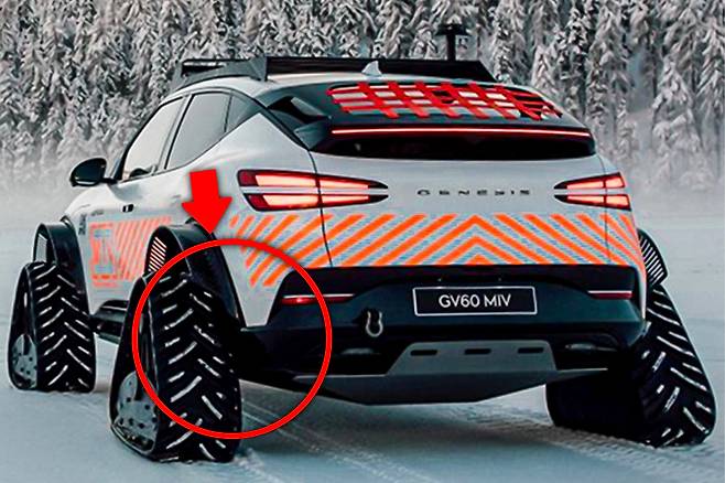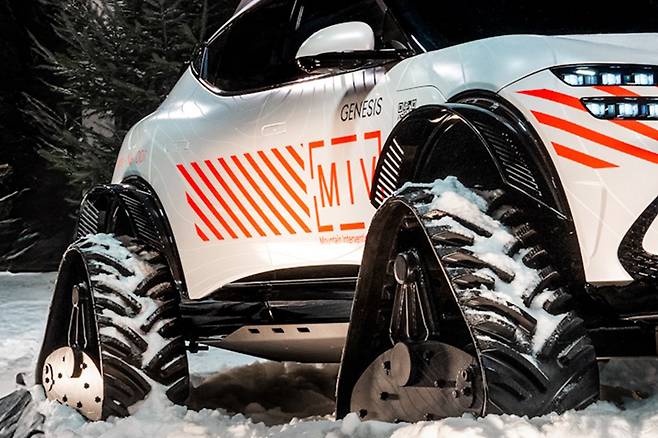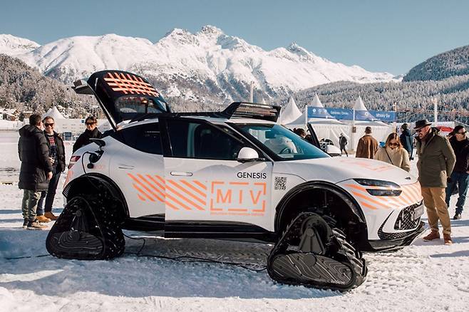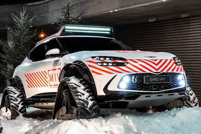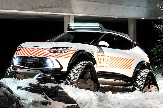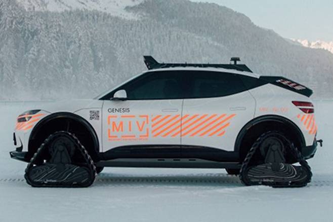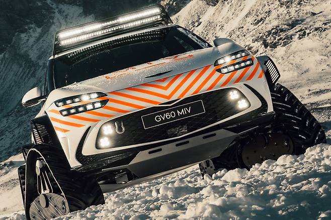 제네시스가 극한 환경에서도 운행이 가능한 다목적 험로주행 콘셉트 모델을 공개했다. 지난 1월 20일(월)부터 24일(금)까지 다보스포럼이 열린 스위스 다보스의 아메론 호텔에서 ‘GV60 다목적 험로주행 콘셉트(GV60 Mountain Intervention Vehicle Concept)’를 전시했다.
