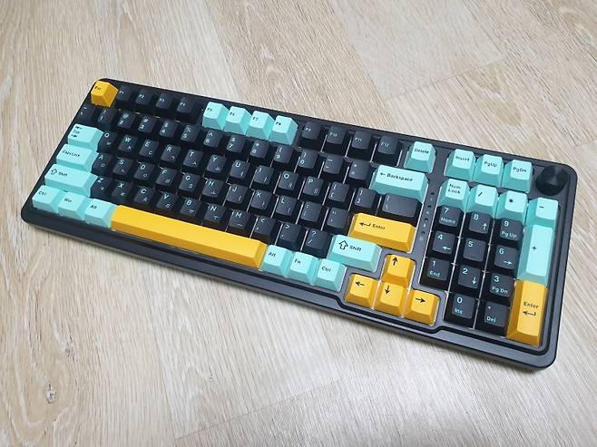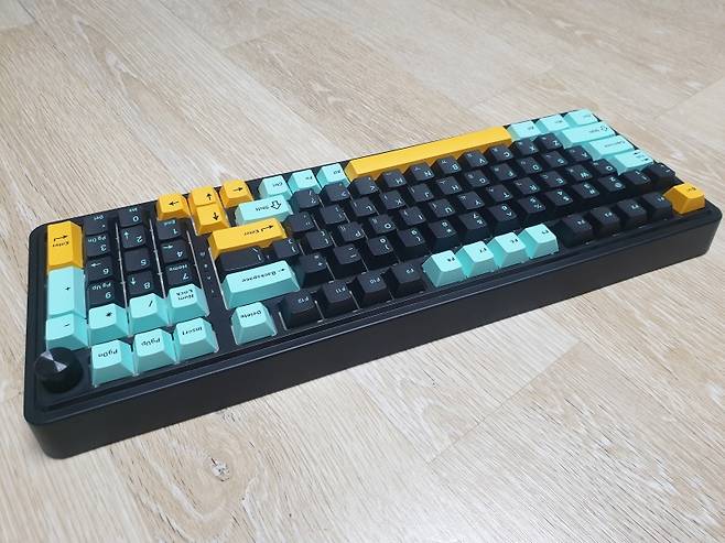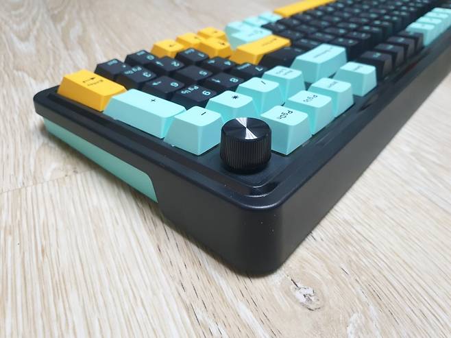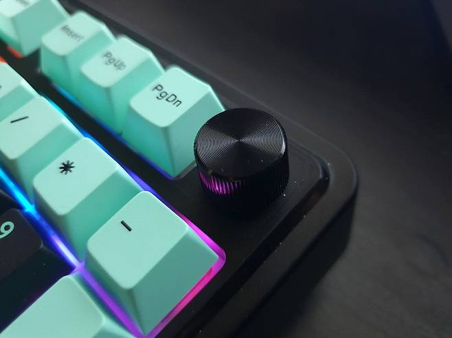 한 크기로 다이얼 노브가 탑재된 유선 기계식 키보드입니다.