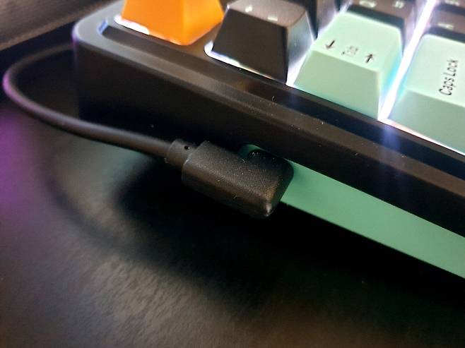 키보드 왼쪽 측면에 C 타입 전원 포트가 있어 높은 공간 활용도를 자랑합니다.