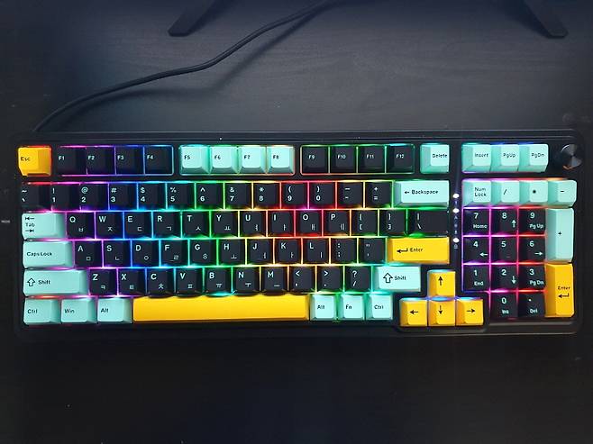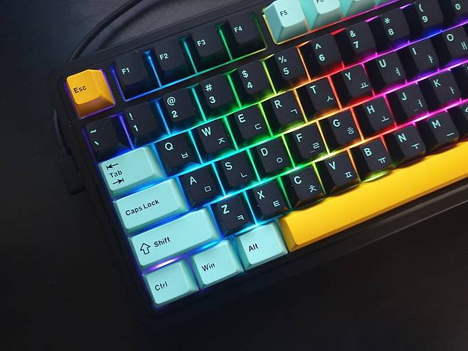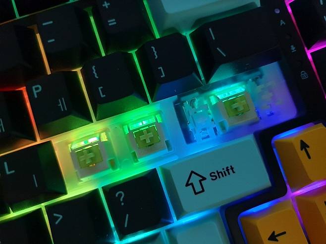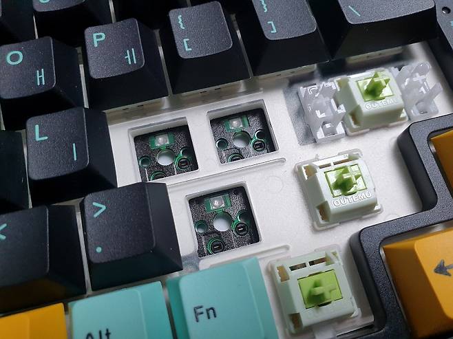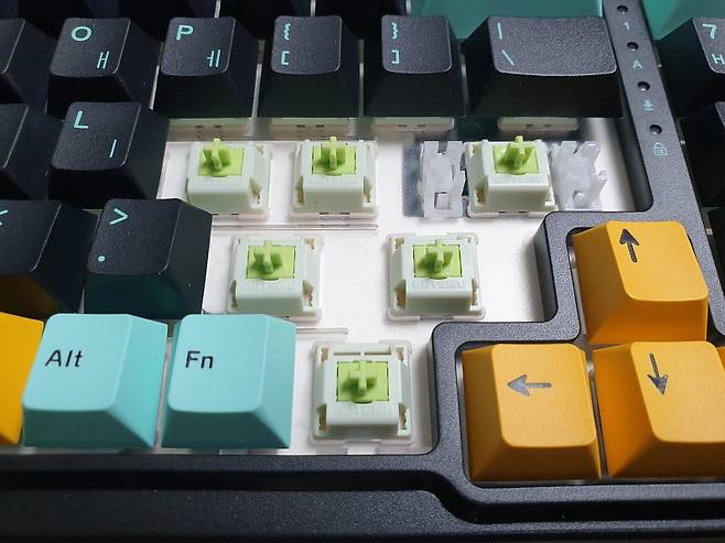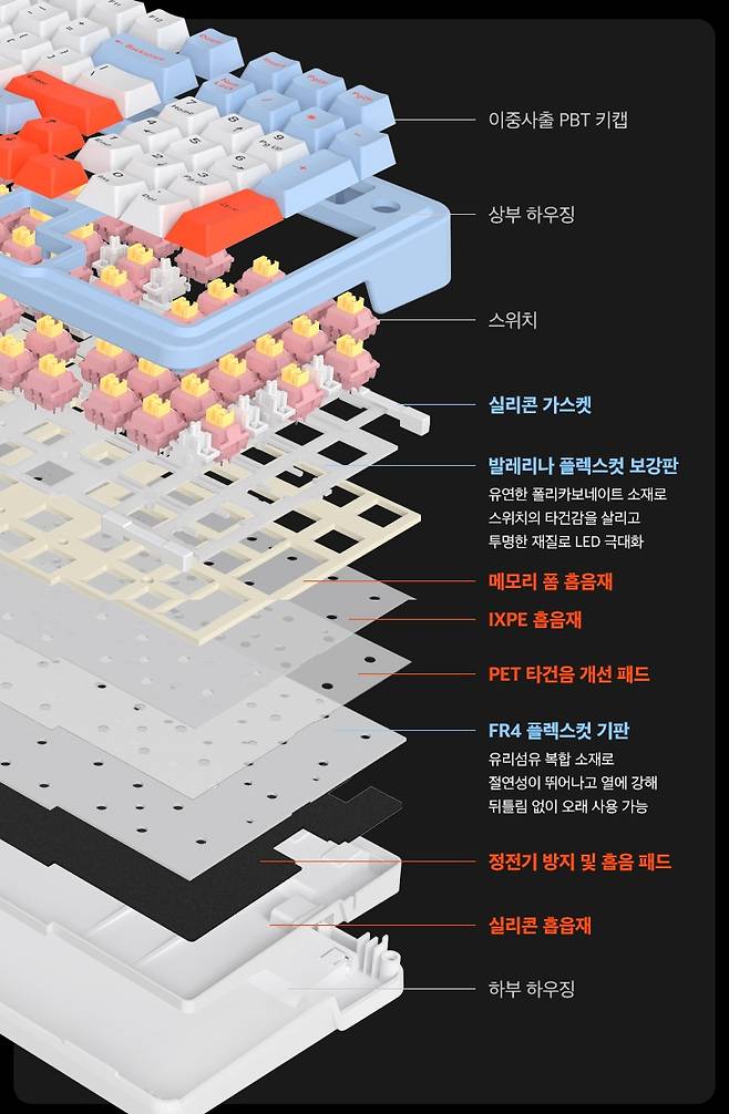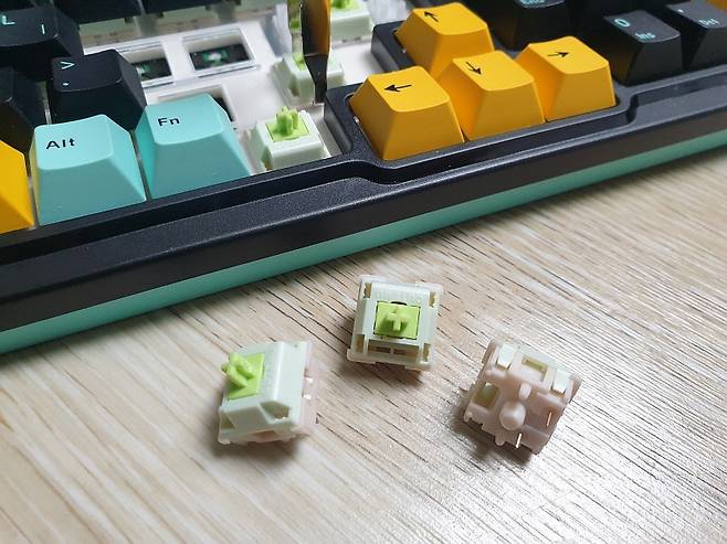 - 핫스왑 방식 설계로 스위치 쉽게 교체 가능, PBT 이중 사출 3가지 색상 키캡