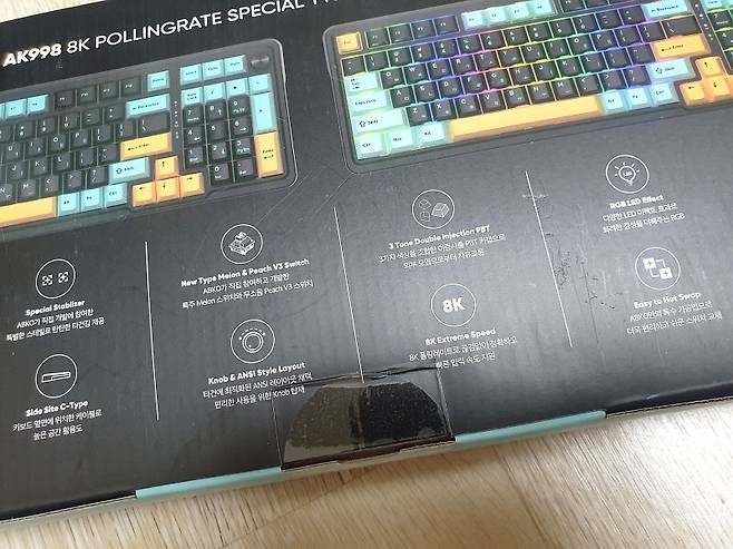 - ABKO AK998 8K 특주축 기계식 키보드 블랙 (멜론축) RGB LED 모드, 속도, 밝기