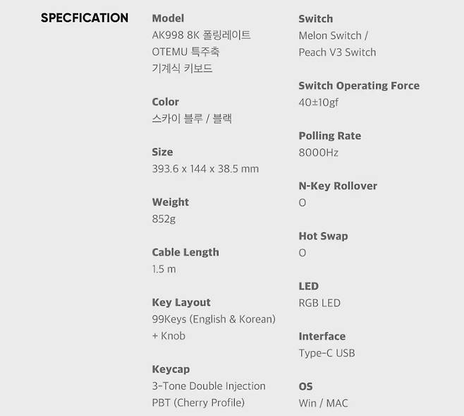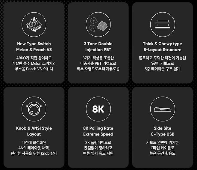 ▶ABKO AK998 8K 특주축 기계식 키보드 블랙 (멜론축) 특징