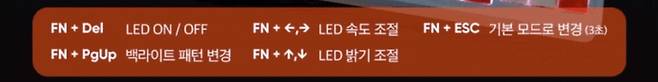 총 18가지 LED 패턴 모드이고, 추가로 FN + PgDn 누르면 LED 컬러 변경 모드(8가지) 입니다.