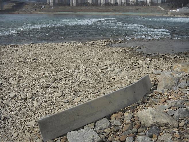 | ▲ 세종보 가동보 연결 접합부위 뜯겨져 방치 세종보 가동보 일부 연결 접합부위가 뜯겨져 유실된 채 방치되었다. (2013년 2월 28일) |
