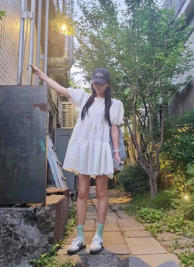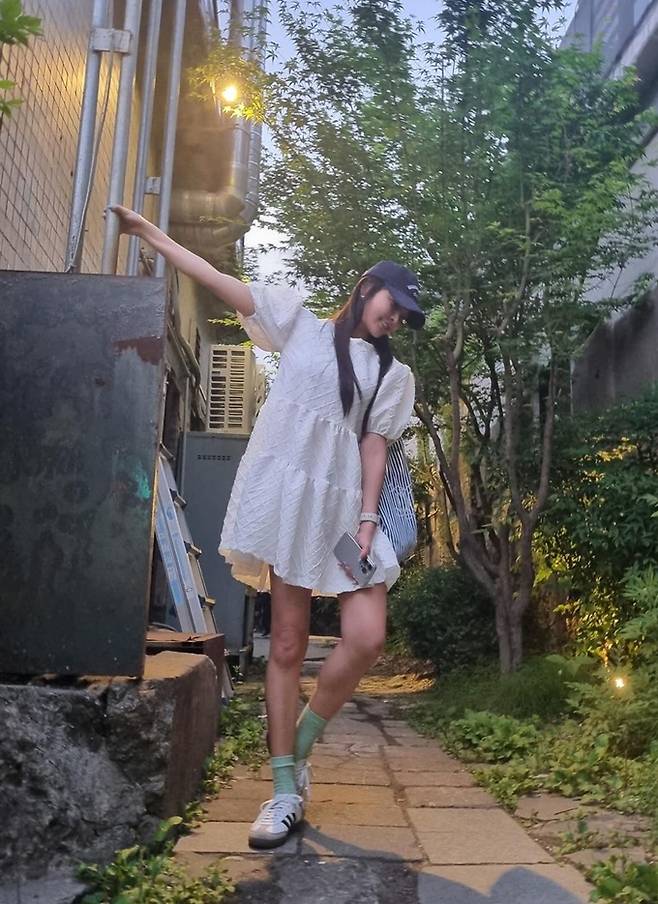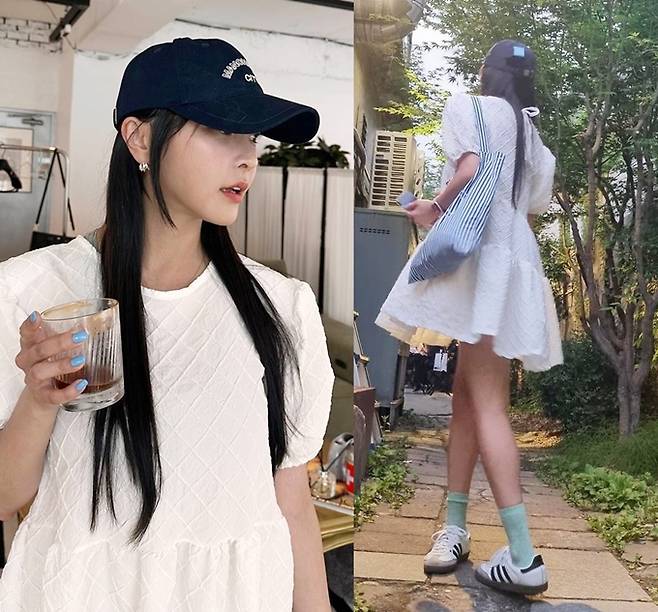 공개한 사진에서 정유미는 화이트 미니 원피스에 청량한 스트라이프 에코백을 메고 블랙 볼캡을 매치한 외출룩으로 싱그러우면서도 예쁜 여름 스타일을 완성했다.