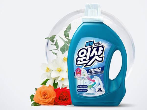 슈가버블 원샷 세탁세제는 실내건조 시의 꿉꿉한 냄새의 주범이 되는 축적 얼룩과 찌든 때를 제거할 수 있는 제품이다. 7종 효소(셀룰라아제, 프로테아제 서브틸리신, 피라아제, 만나아제, 아밀라아제 등)와 세정력이 탁월한 베이킹 소다를 활용해, 꿉꿉한 냄새의 원인인 찌든 때를 제거한다. 이염 방지제 성분과 클리닝 케어 효소를 함유해 이염을 방지하고, 옷감의 변색을 케어할 수 있다. 3L 제품 4개들이 패키지를 26,900원에 판매하고 있다.